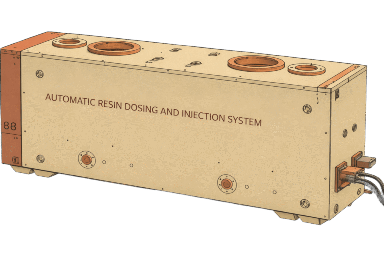 After the two quantified resin materials are respectively quantified by the hydraulically- driven piston cylinders, the separate quantitative filling of the two resins is achieved through components such as pipes and nozzles. The design of this device ensures that the resin can be evenly and stably transported to the designated location.
